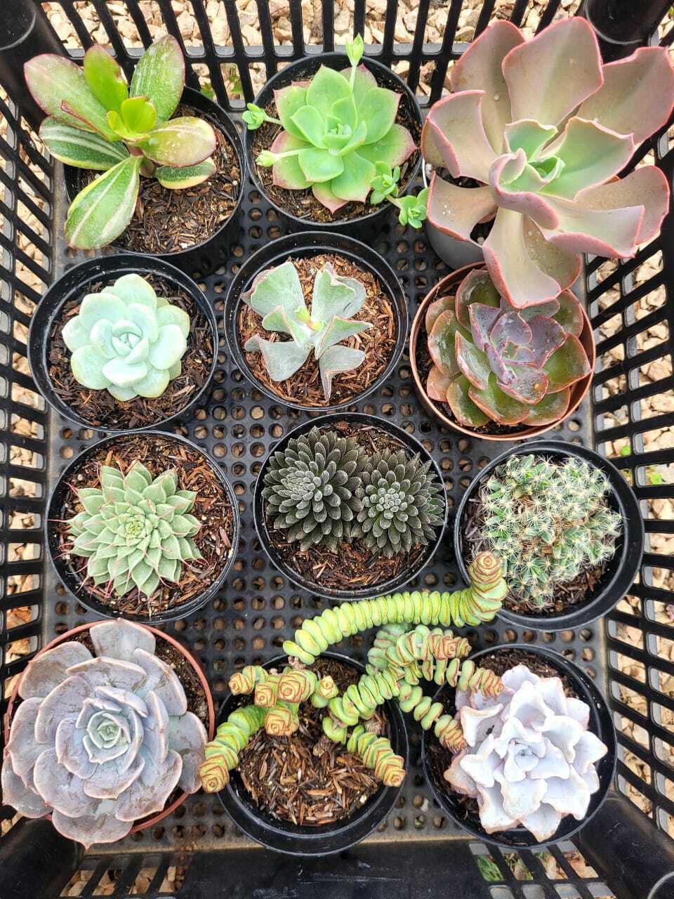 As suculentas e cactos serão enviadas com as raízes nuas, sem vaso, sem substrato, podendo possuir variação na sua cor e tamanho.
